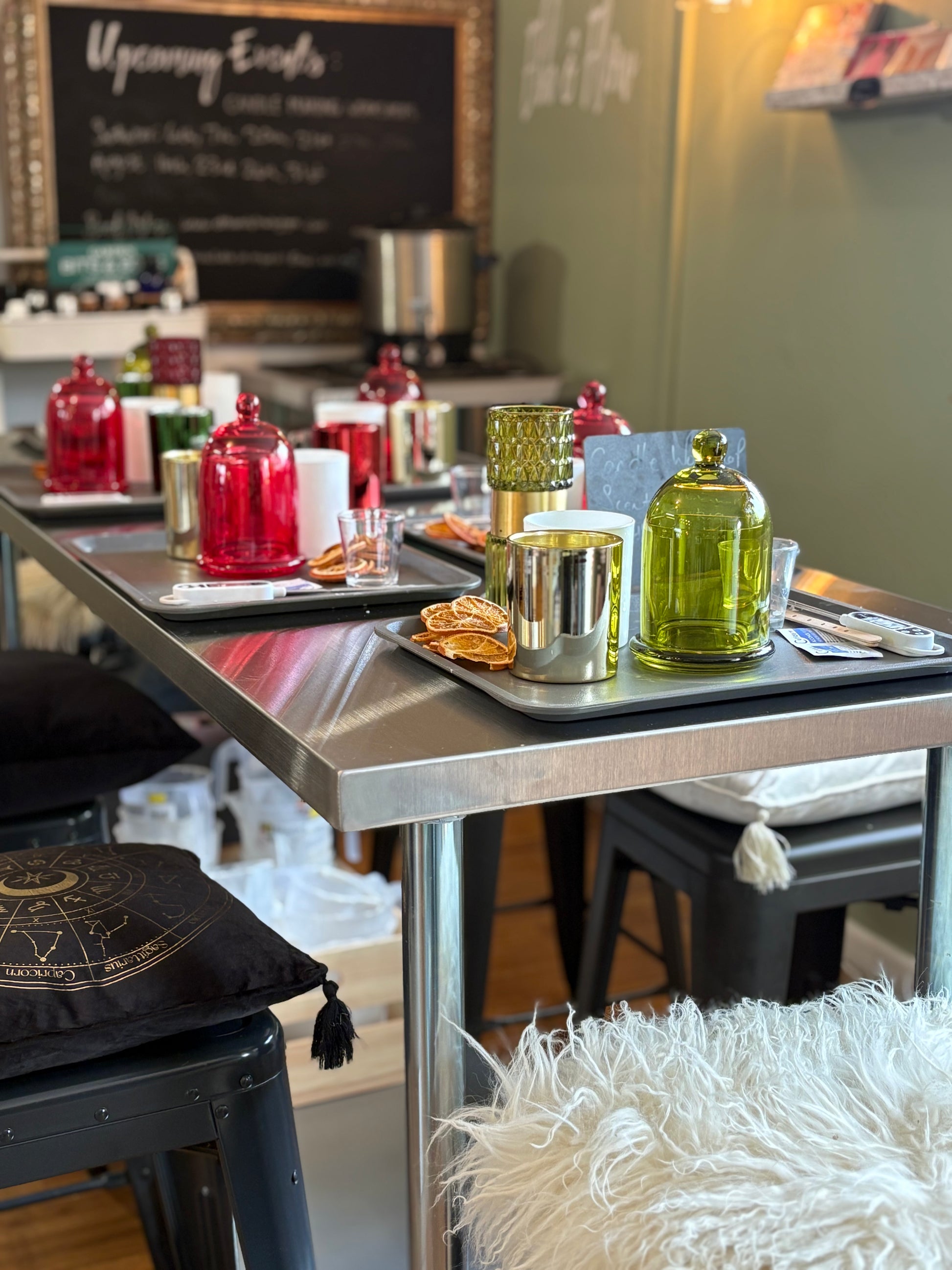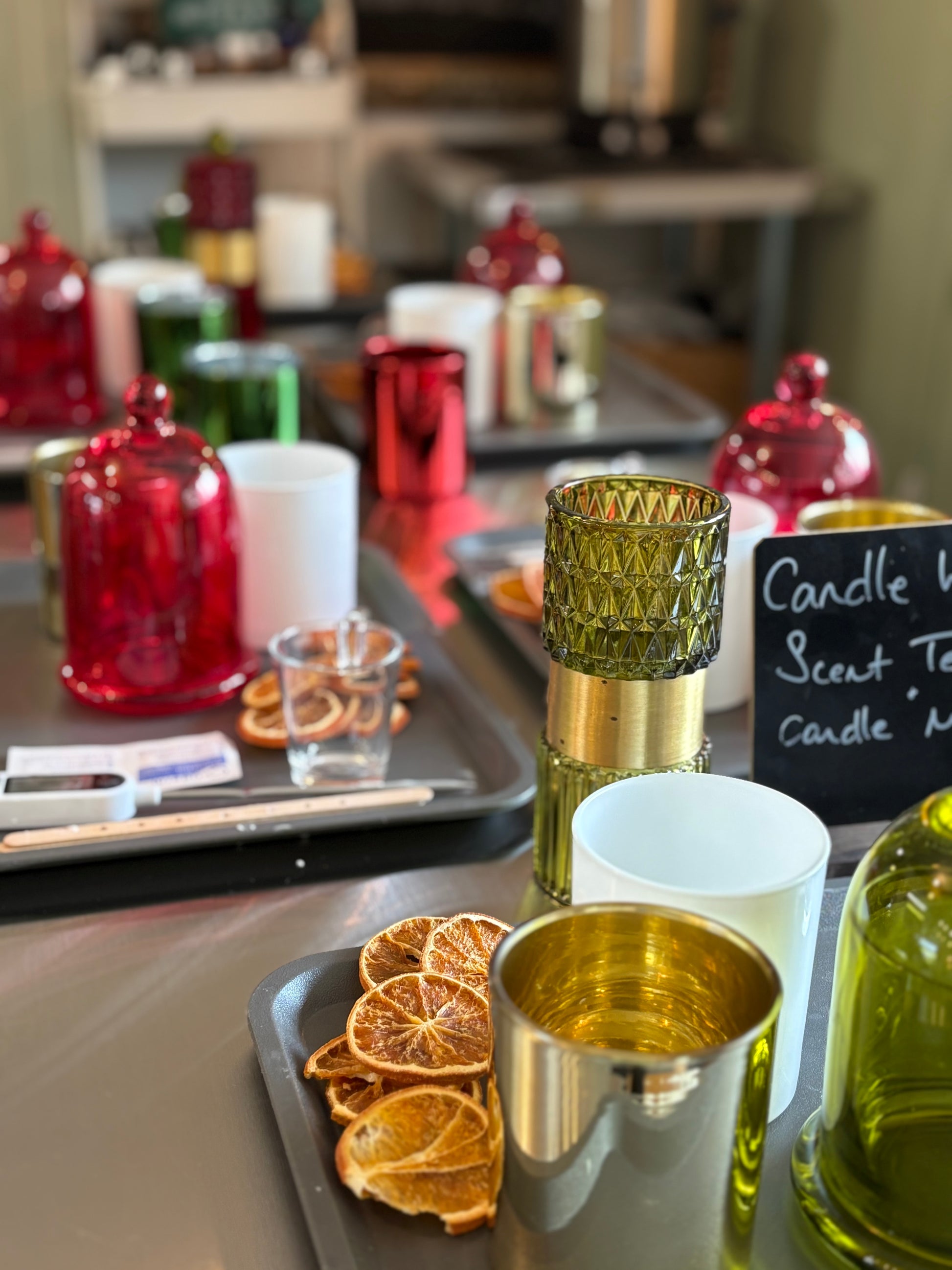 During the session, you will mix your choice of scents, pour your candles and decorate to your liking. Any left over wax can be used to create tea lights or wax melts.